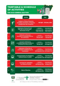 The Independent National Electoral Commission (INEC) has released the schedule of activities for the 2023 general election.