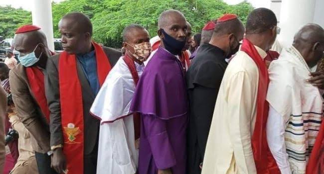 National President of the Nigerian Labour Congress (NLC) Ayuba Wabba, leading the solidarity protest on ASUU strike at the gate of the National Assembly on Wednesday. Photo: Sylvanus Tyoakaa