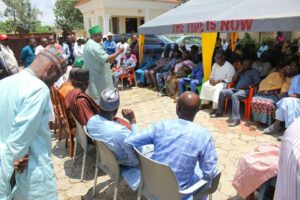 Plateau state governorship candidate of the Peoples Democratic Party (PDP), Barrister Caleb Mutfwang, receiving the party’s stakeholders from Jos North LGA who paid him a solidarity visit at his Rayfield residence in Jos. The stakeholders were led by the PDP Chairman in the LGA, Hon. Aminu Abdullahi.